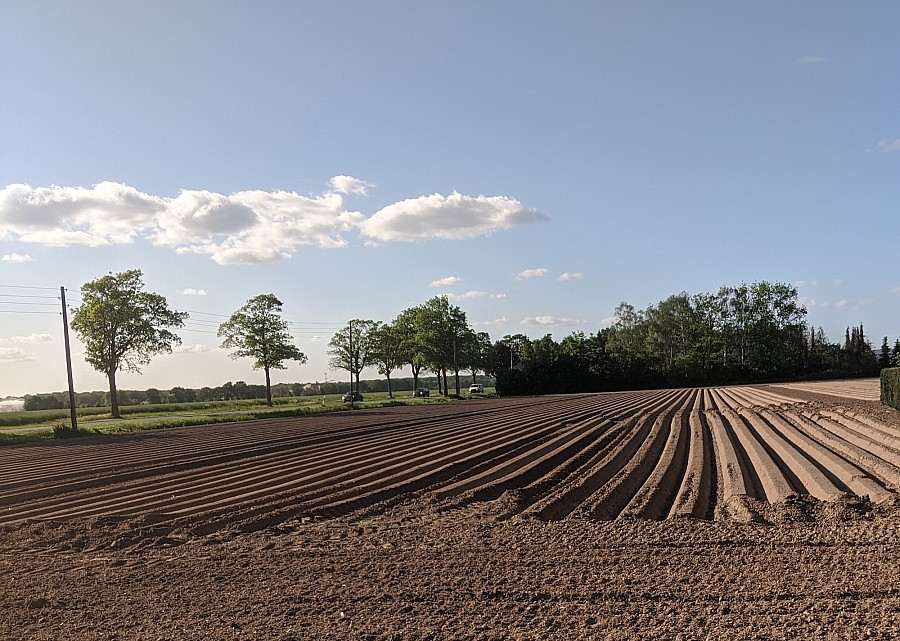 Pflanzung unseres Demofeldes direkt an der B9 in Weeze durch Agrarservice Schmitz GmbH. Wie in den vergangenen Jahren wurden wieder einige neue, aber auch bewährte Sorten zur Demonstration gepflanzt.