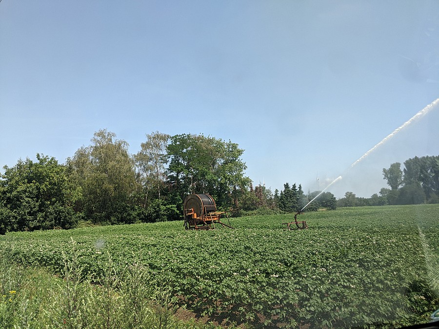 Da es in den vergangenen Wochen keine nennenswerten Niederschläge gab, musste Lohnunternehmen Schmitz zur Ertrags- und Qualitätssicherung mit künstlicher Bewässerung beginnen.