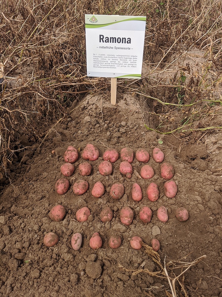 Darüber hinaus wurden die Sorten Bernina, Otolia, Karelia und die rotschalige, festkochende Sorte Ramona gepflanzt – alles Sorten aus dem Züchterhaus Europlant.