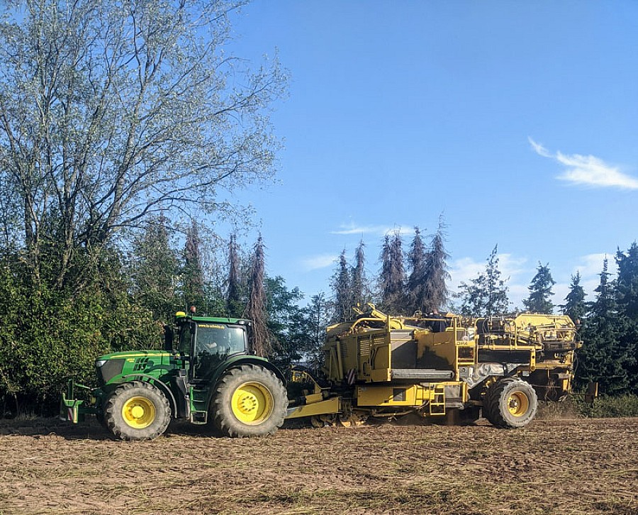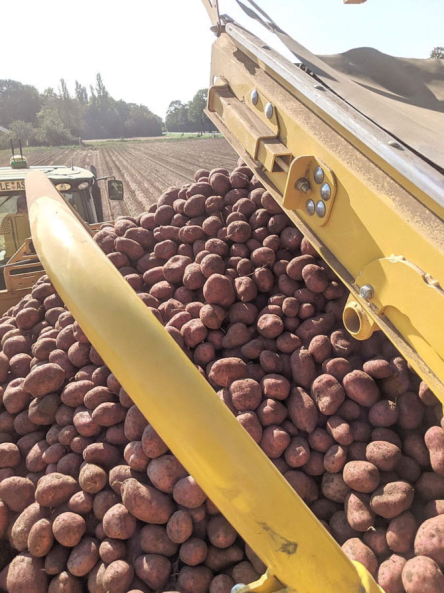 Die Kartoffeln wurden am 16. September durch Firma Schmitz gerodet. Die trocknende Bodenstruktur bereitete zwar einige Probleme, aber durch genügend Erdaufnahme konnten Beschädigungen verhindert werden.