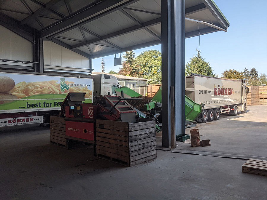 Nach 6-monatiger Corona-bedingter Verzögerung ging nun die zweite Waschlinie für Speisekartoffeln in Betrieb. Diese leistungsstarke Anlage ermöglicht es, weitere 30 t/Stunde zu waschen, zu polieren und zu sortieren. Die Kartoffeln werden hierbei schonend von Erdklumpen und Steinen getrennt und anschließend durch die leistungsstarke Waschmaschine geführt.